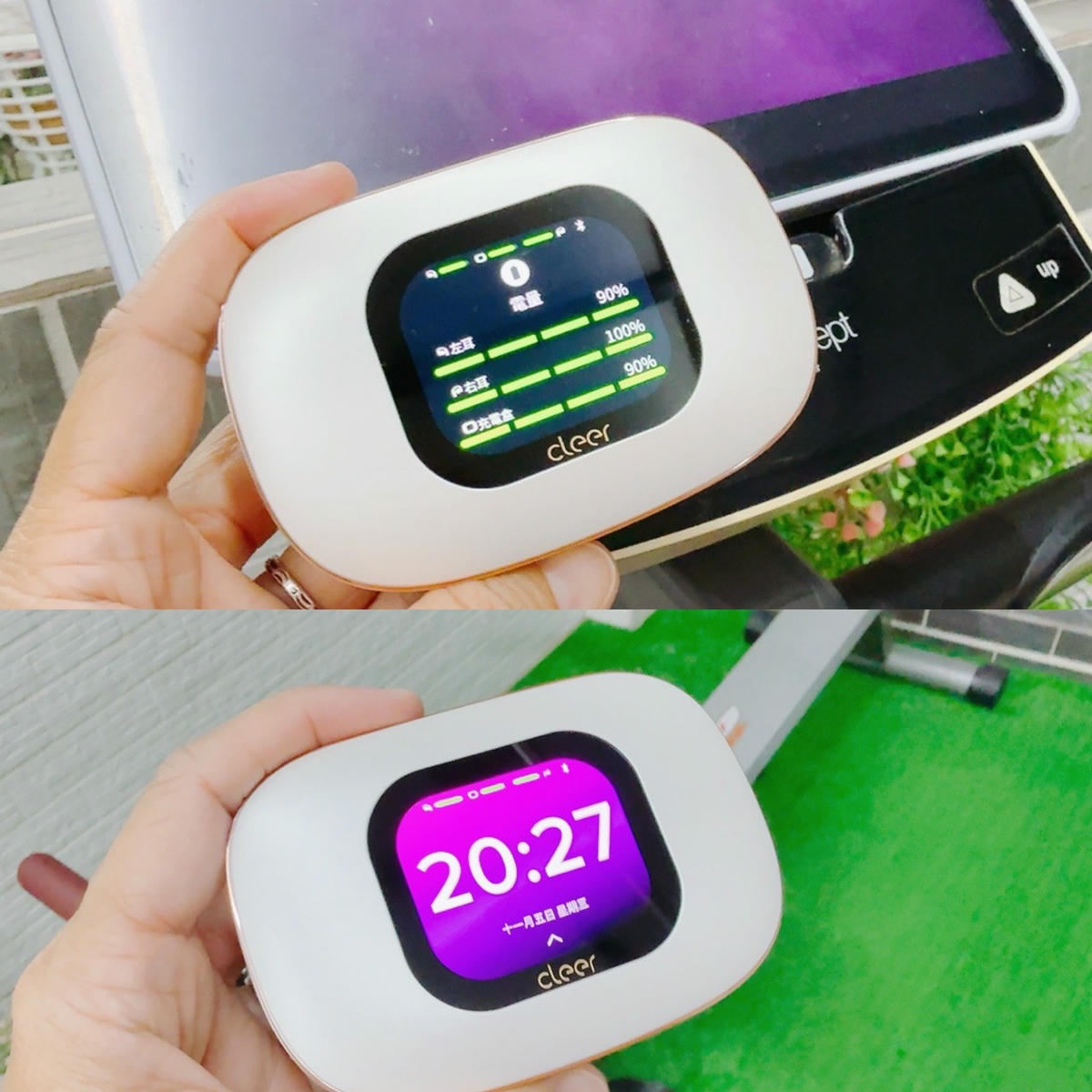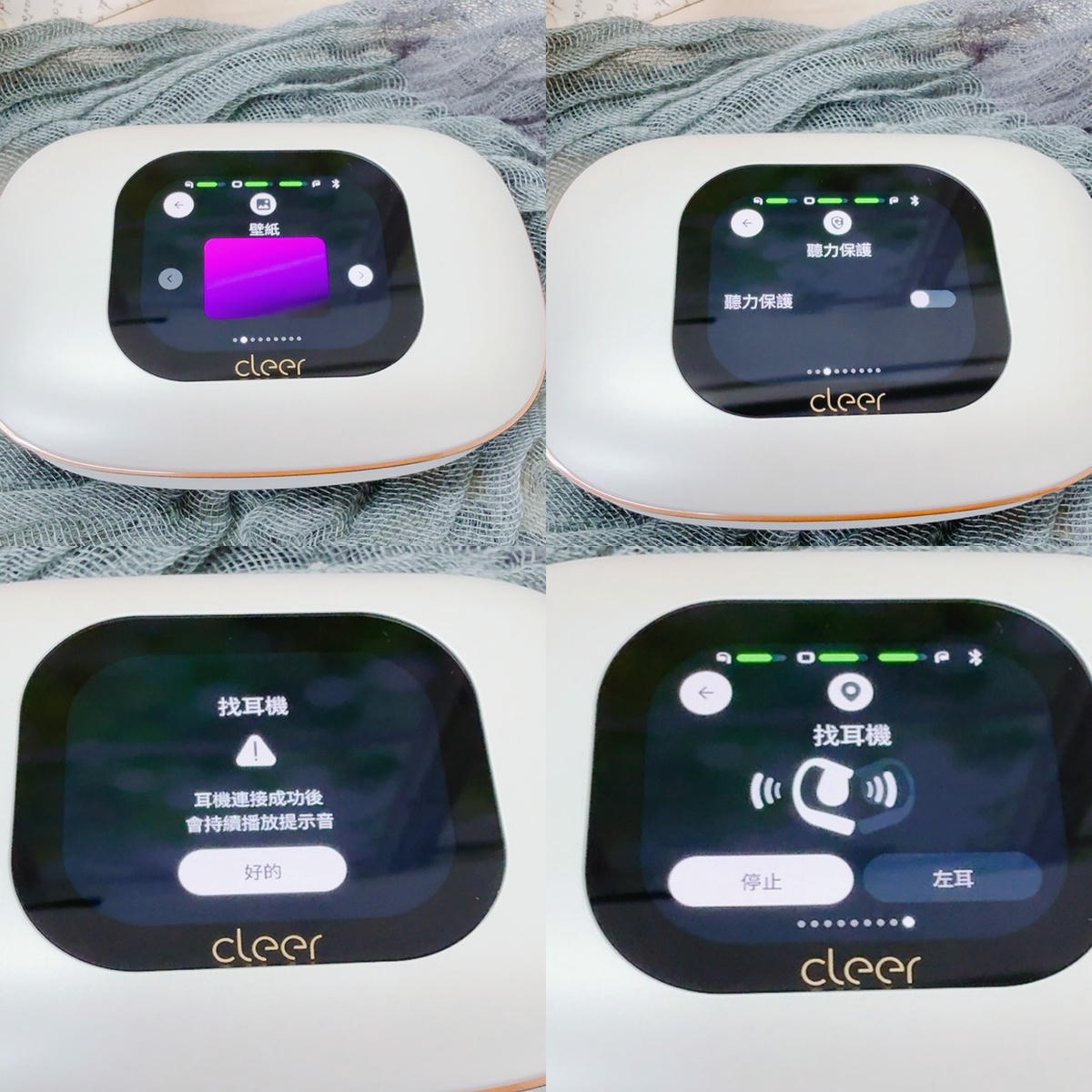 在充電盒的觸控螢幕上,可以清楚看見左耳、右耳以及充電盒的即時電量,