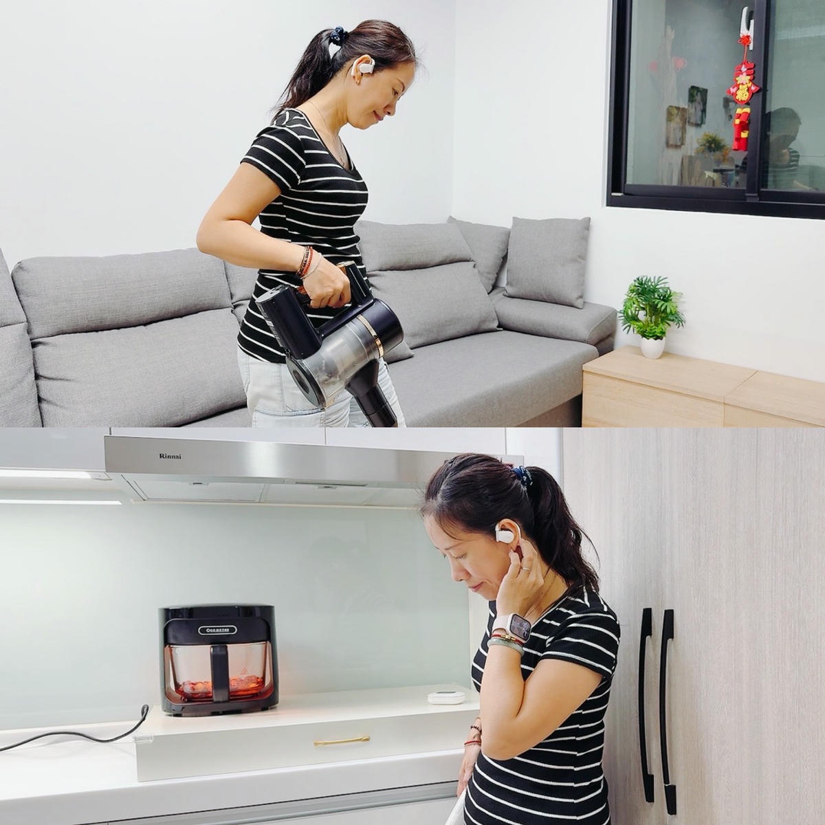整理家務或拖地時,也很方便戴著耳機,清楚聽到背景音樂或播放內容,