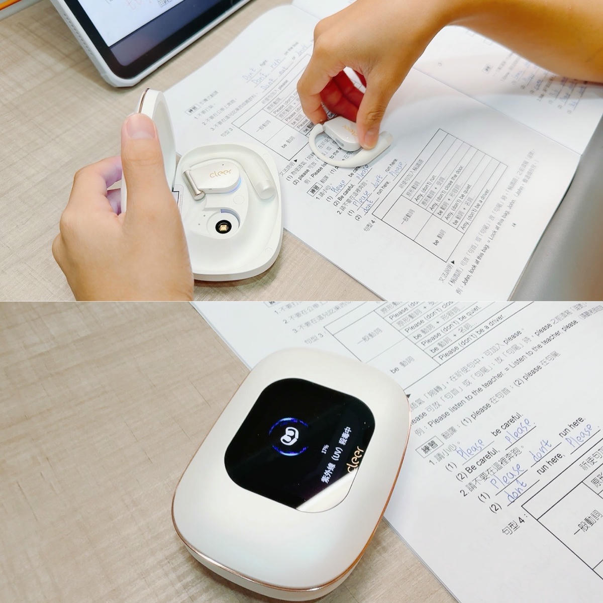 而且使用完後,只要放回充電盒,就會自動啟動紫外線消毒功能,