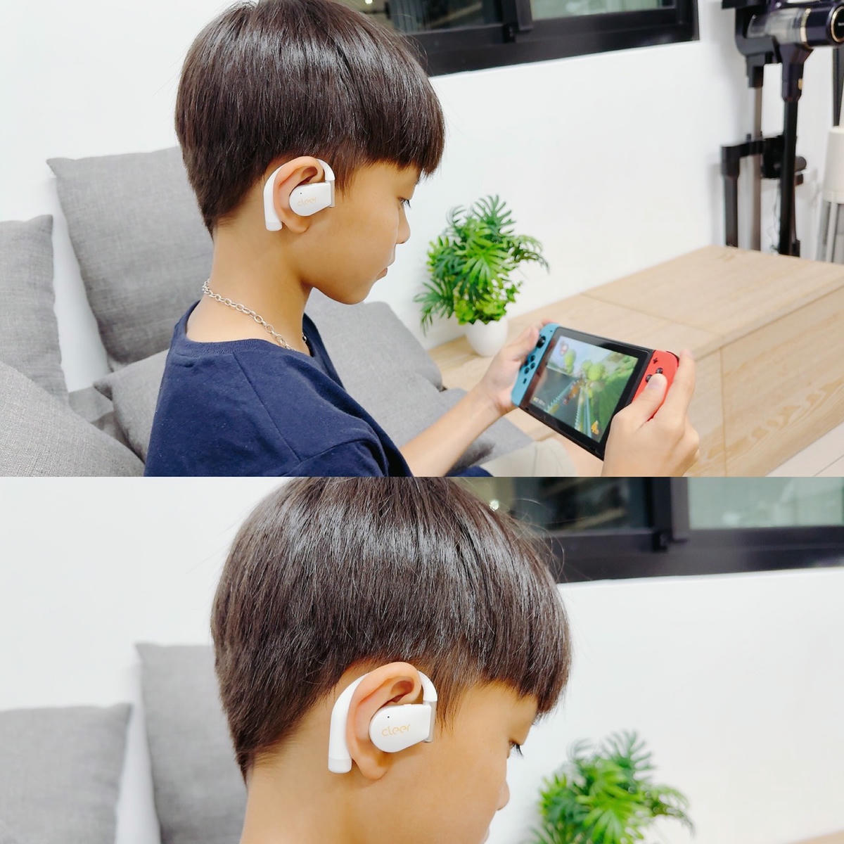 開放式設計讓耳朵完全不悶、不會滑落,還能同時聽到家裡的聲音,