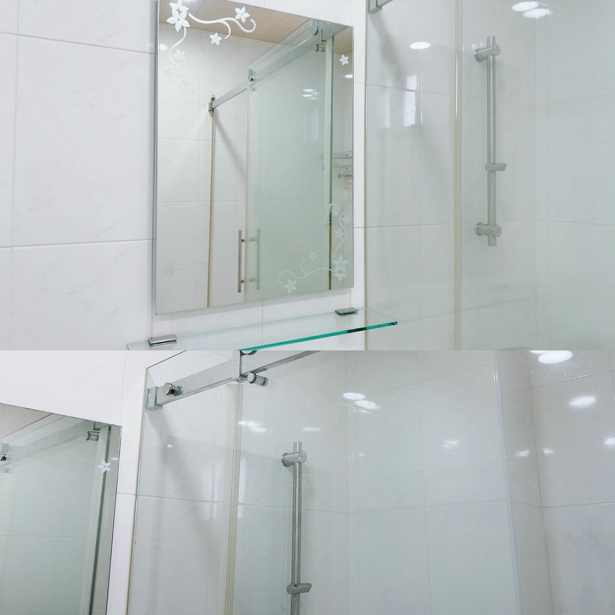 我最常用它來清潔 浴室的梳妝鏡、玻璃門、落地窗、窗戶、牆面等地方,