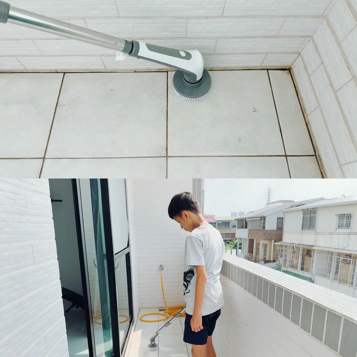 我最常拿來清潔浴室或陽台地板,大面積刷起來超有效率,輕鬆就能把水垢、灰塵通通帶走~