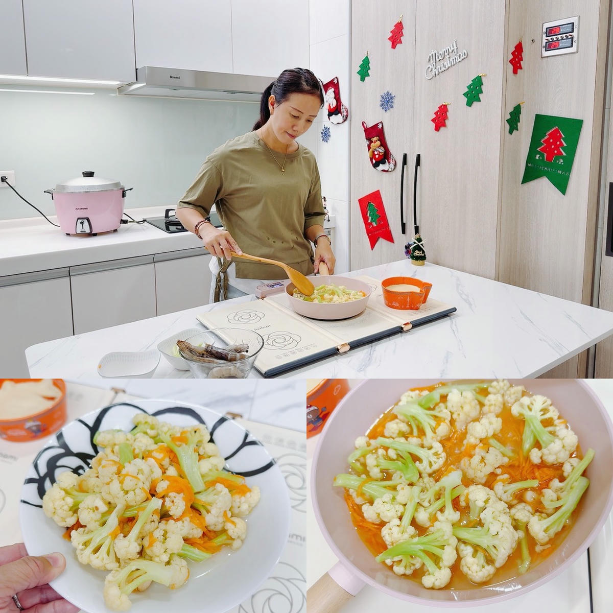這次先從最基本的蒜頭爆香炒花椰菜開始,蒜香瞬間四溢,整個餐桌都聞到幸福的味道~
