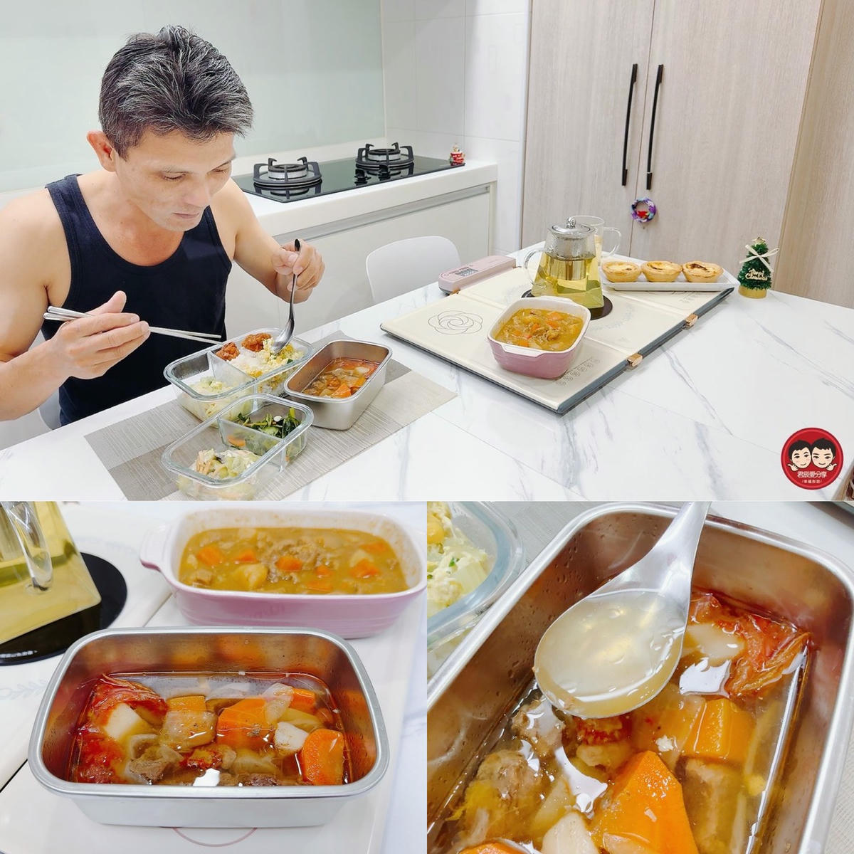 像這天我幫家人覆熱咖哩、番茄牛肉湯,再加上孩子們最愛的蛋塔,