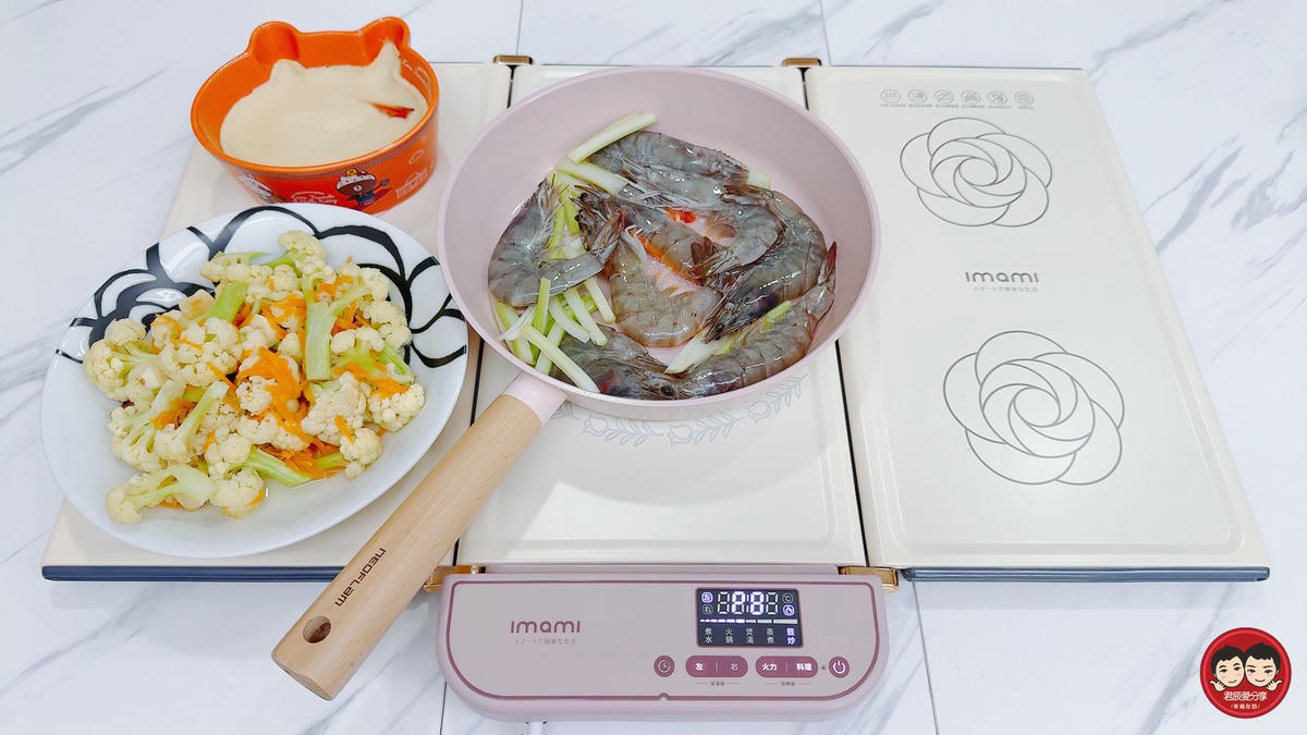 想幫隊友加菜時,直接把煎鍋放上 imami 暖食樂 Pro 黑晶電陶爐,開啟煎炒模式,