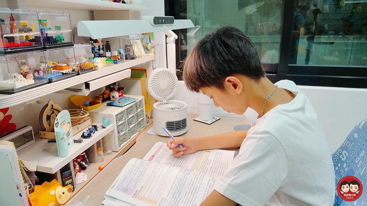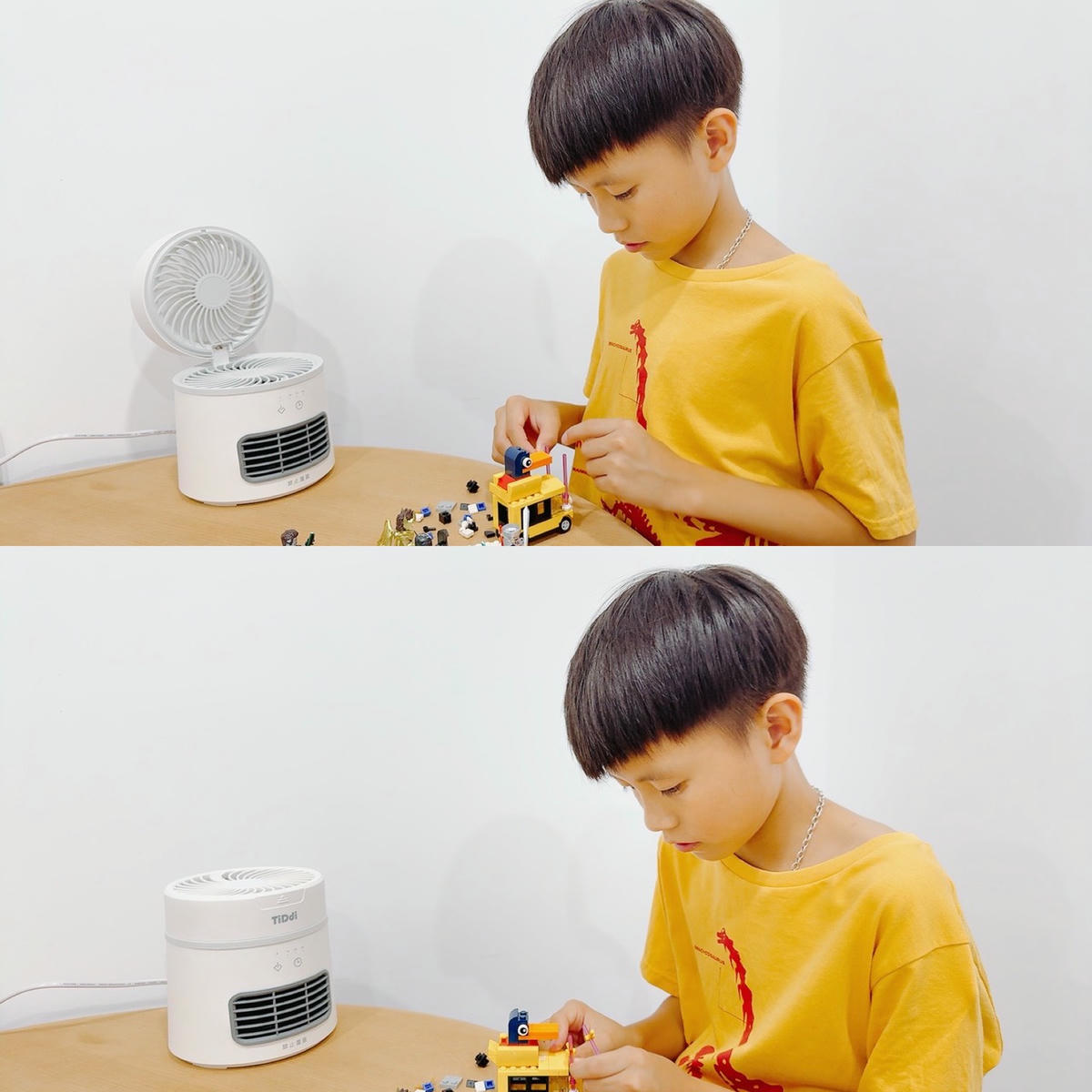 不論是孩子在書桌上寫功課、閱讀、組積木時開著涼風,